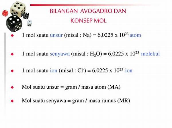 Bilangan Avogadro sering dijuluki sebagai leviathan yang tersembunyi di balik setiap perhitungan molekuler. Dengan angka setara 6,022 x 10^23 ini, kita dipandu untuk memahami bahwa meski partikel kimia tak kasat mata, mereka tetap memiliki struktur dan kuantitas yang bisa diprediksi. Dalam banyak cara, bilangan ini memberikan kesempatan bukan hanya pada pengukuran, tetapi juga pemahaman interaksi dan perubahan materi dalam skala molekuler.
